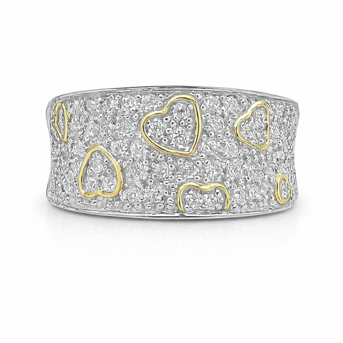 9ct Yellow Gold Wide Heart Design Pave RIng - 0.60ct Natural Diamonds