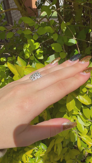 A captivating pave dress ring crafted in rich 9ct yellow gold, featuring an intricate linked teardrop design. Each teardrop is set with a pave arrangement of 0.30 total carats of natural diamonds, creating a dazzling shimmer that catches the light from every angle. The wide band style make this piece a standout choice for both glamorous evenings and refined everyday wear.