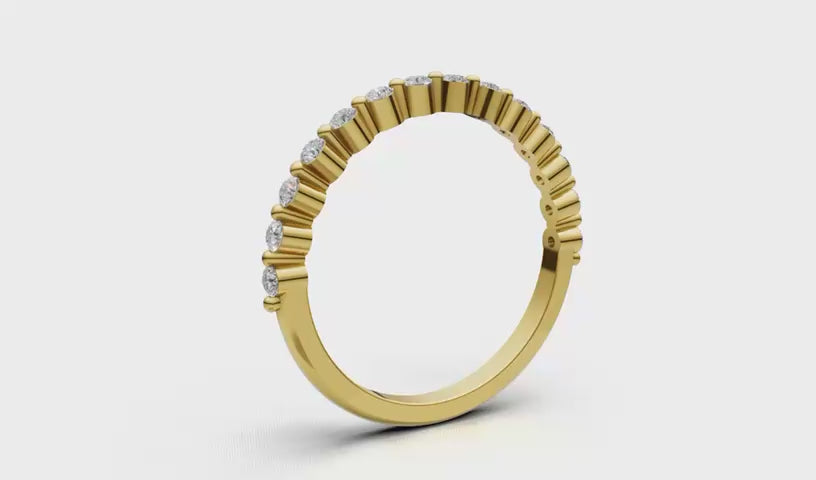 Yellow Gold Half Eternity Band with 14 Diamonds (0.295ct) Shared Claw Setting